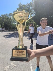 Školski sportski dan u našoj školi obilježili smo u petak, 26. rujna 2025. Učenici su se natjecali u igri graničara. U napetoj završnici između 5.b i 6.a te 7.r i 8.a razreda, zlatne pehare osvojili su učenici 5.b i 7. razreda.